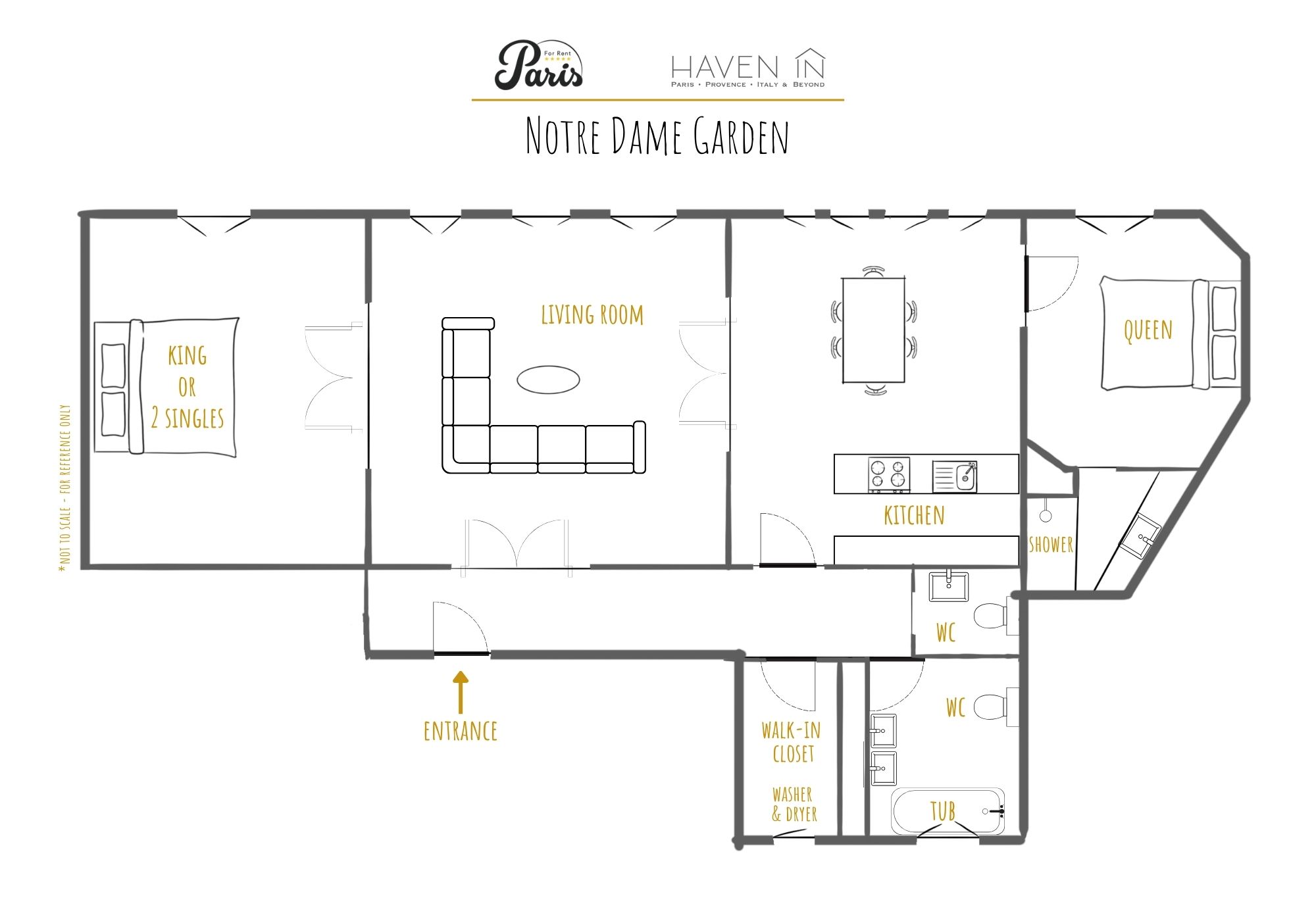 Just steps from the Seine River, Notre Dame, and across a small park from the famous Shakespeare & Company, sits the newly remodeled Notre Dame Garden vacation rental. An elevator to the 5th US floor brings you to this open and airy two-bedroom, two-bathroom, with lovely views of the park and churches. One can even catch a glimpse of the top of the Eiffel Tower in the distance. At your doorstep is Paris’ famous Latin Quarter, with its many shops, cafés, landmarks, and transportation.