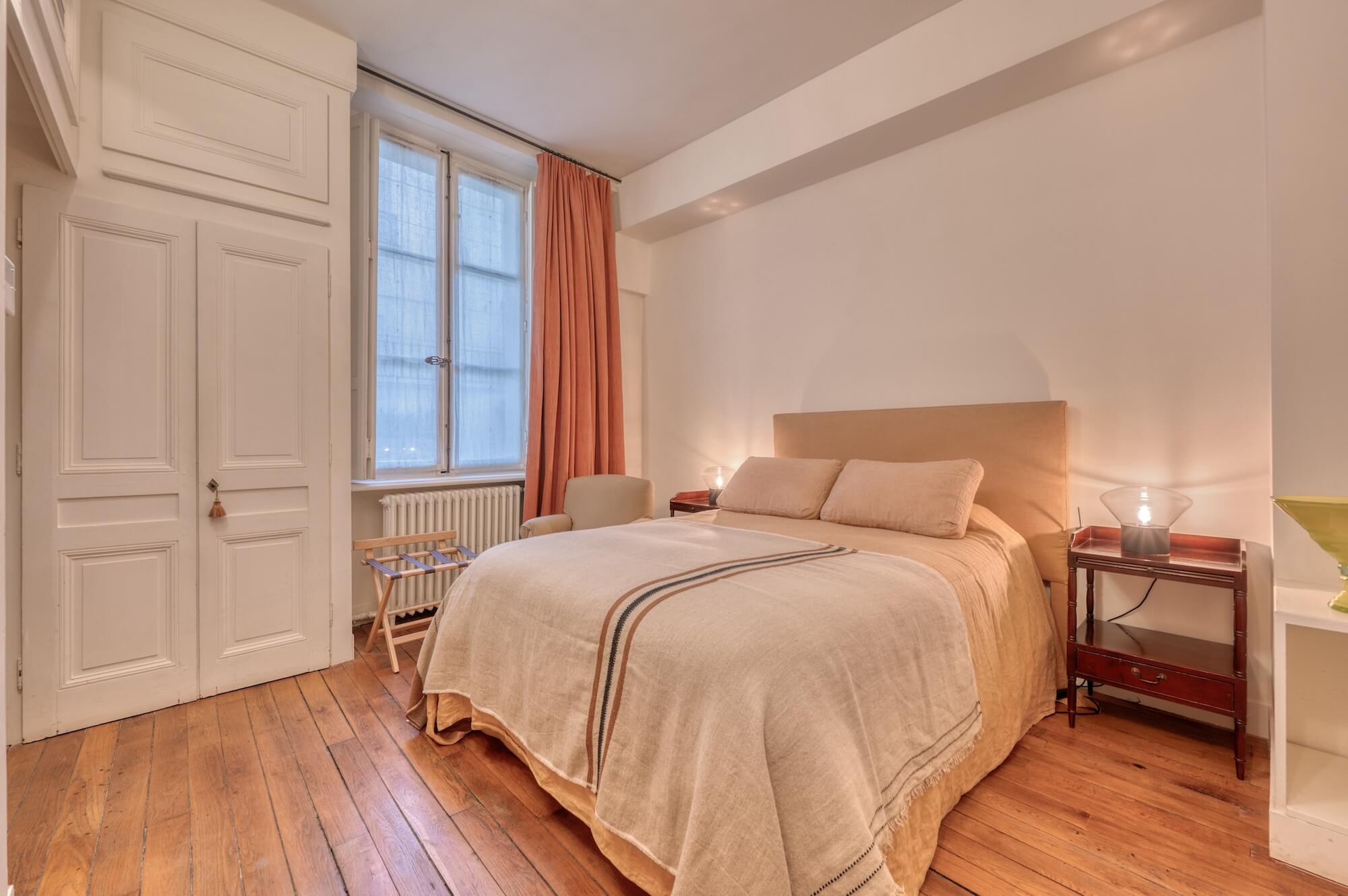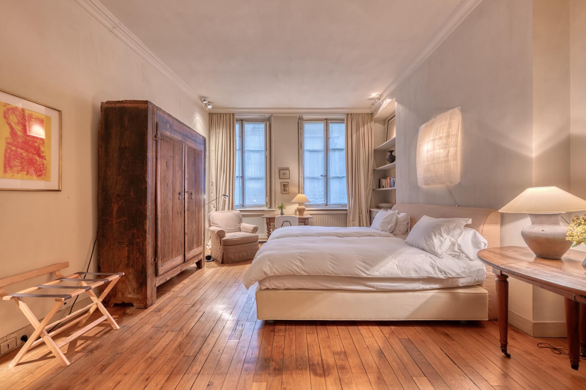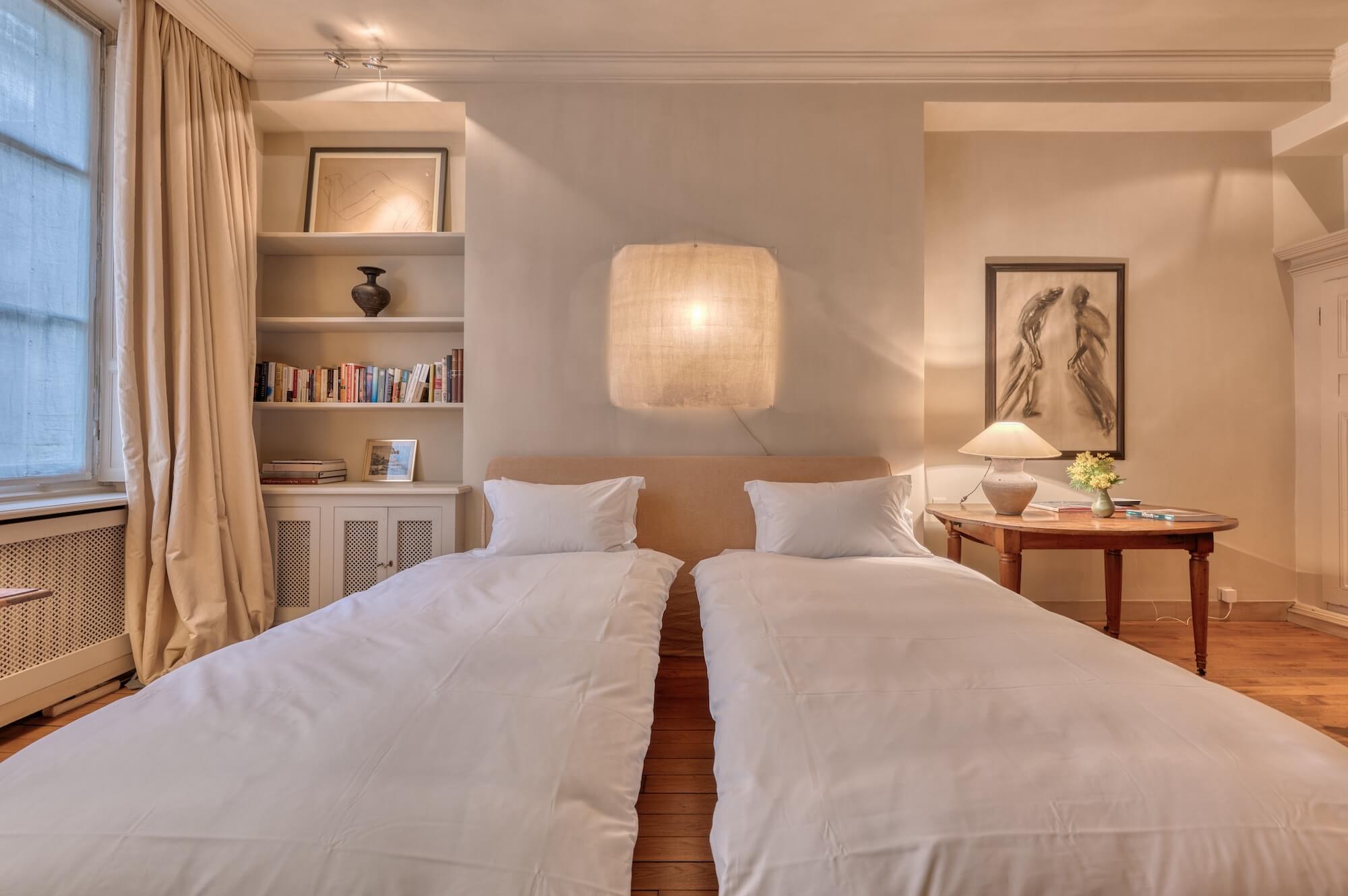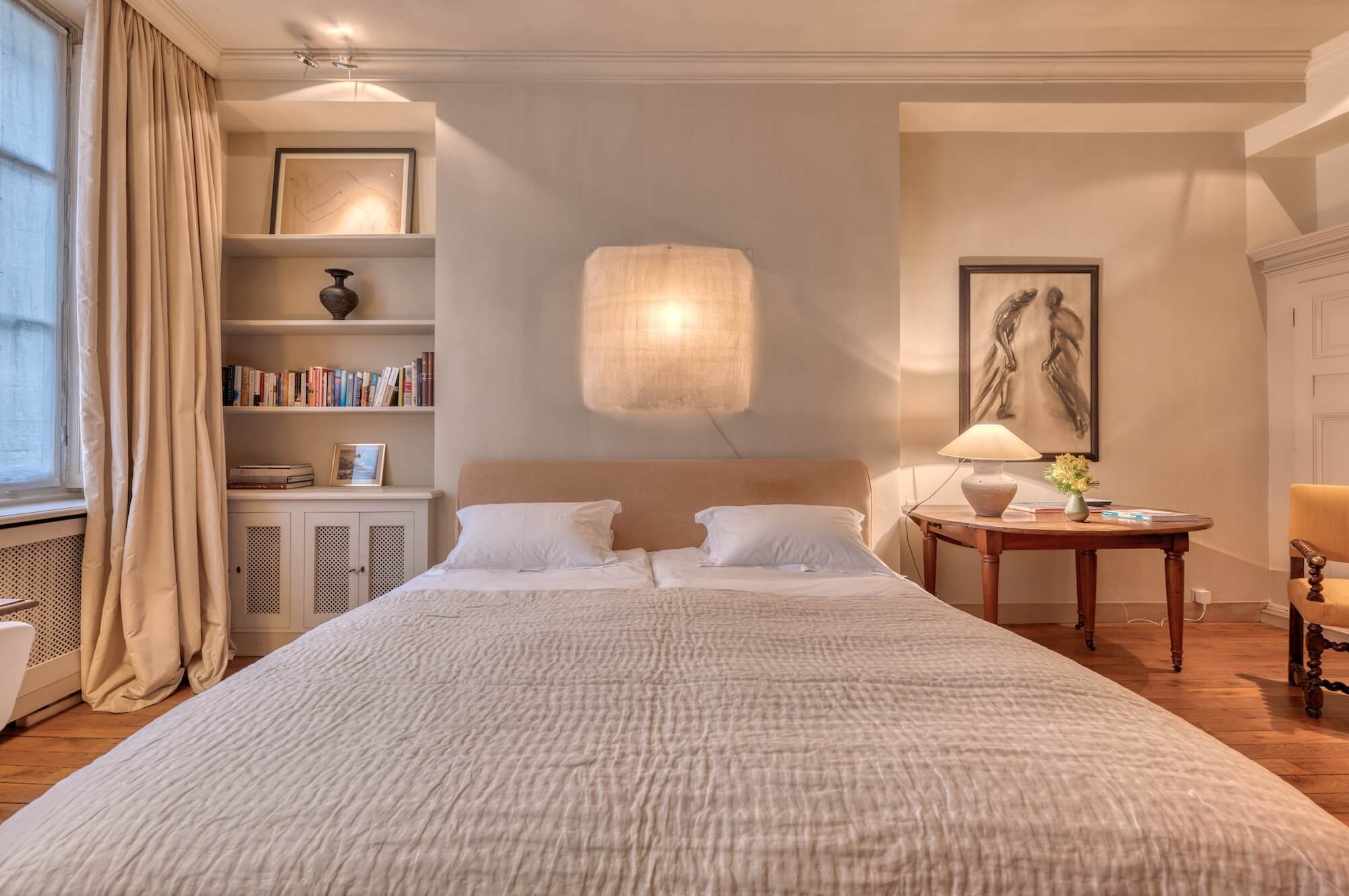 This St Germain duplex, with its two bedrooms and two bathrooms over a spacious floorplan (1300 square feet) of earth-toned, inviting living spaces, is a delightful home away from home.