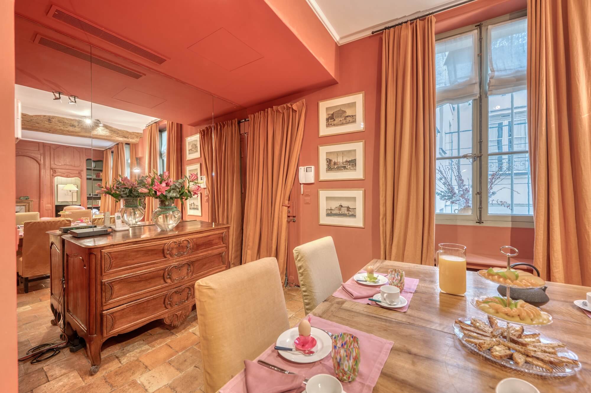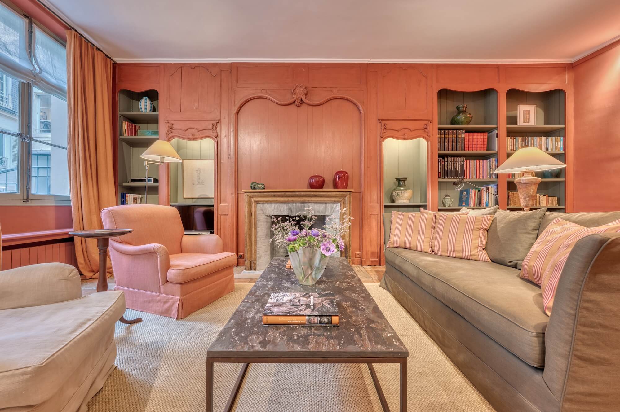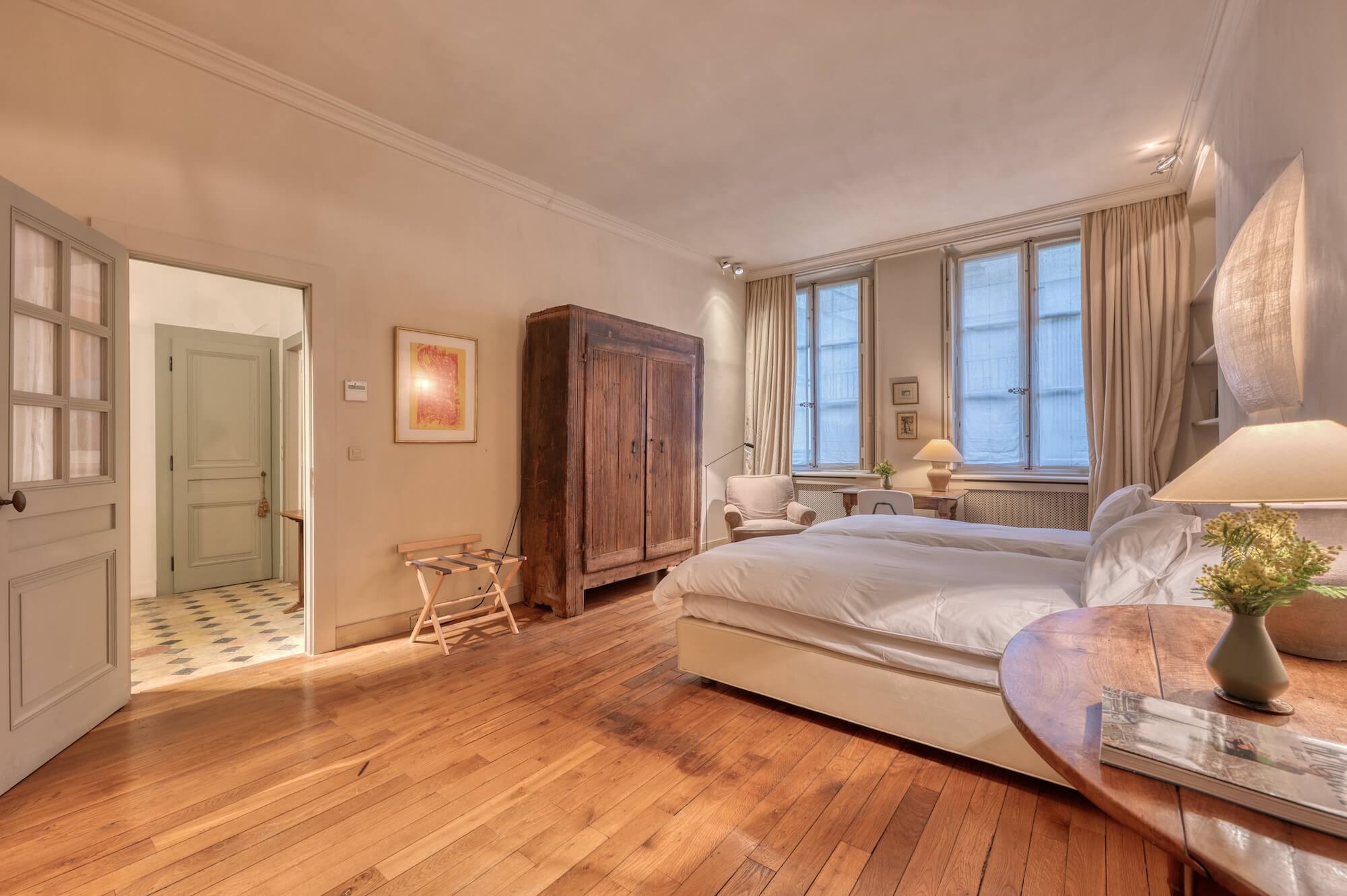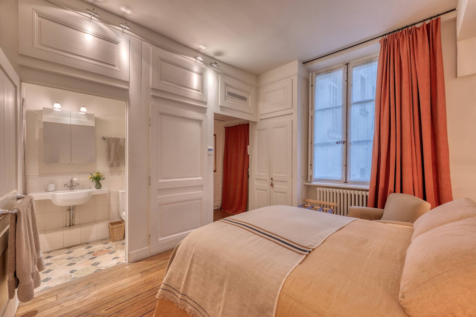 This St Germain duplex, with its two bedrooms and two bathrooms over a spacious floorplan (1300 square feet) of earth-toned, inviting living spaces, is a delightful home away from home.