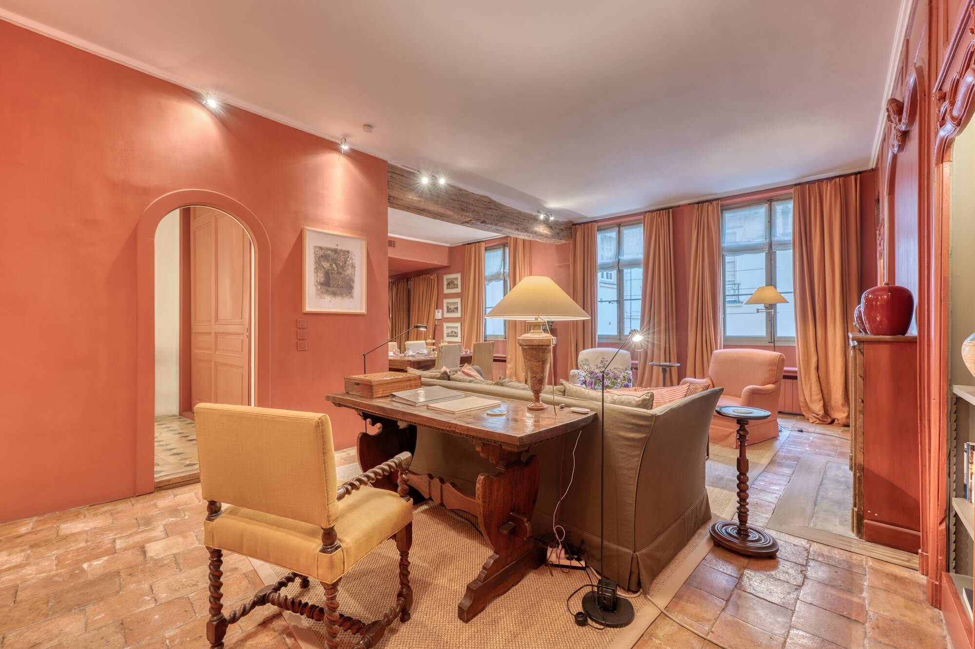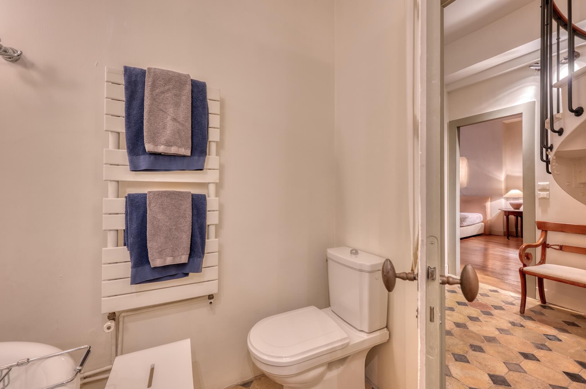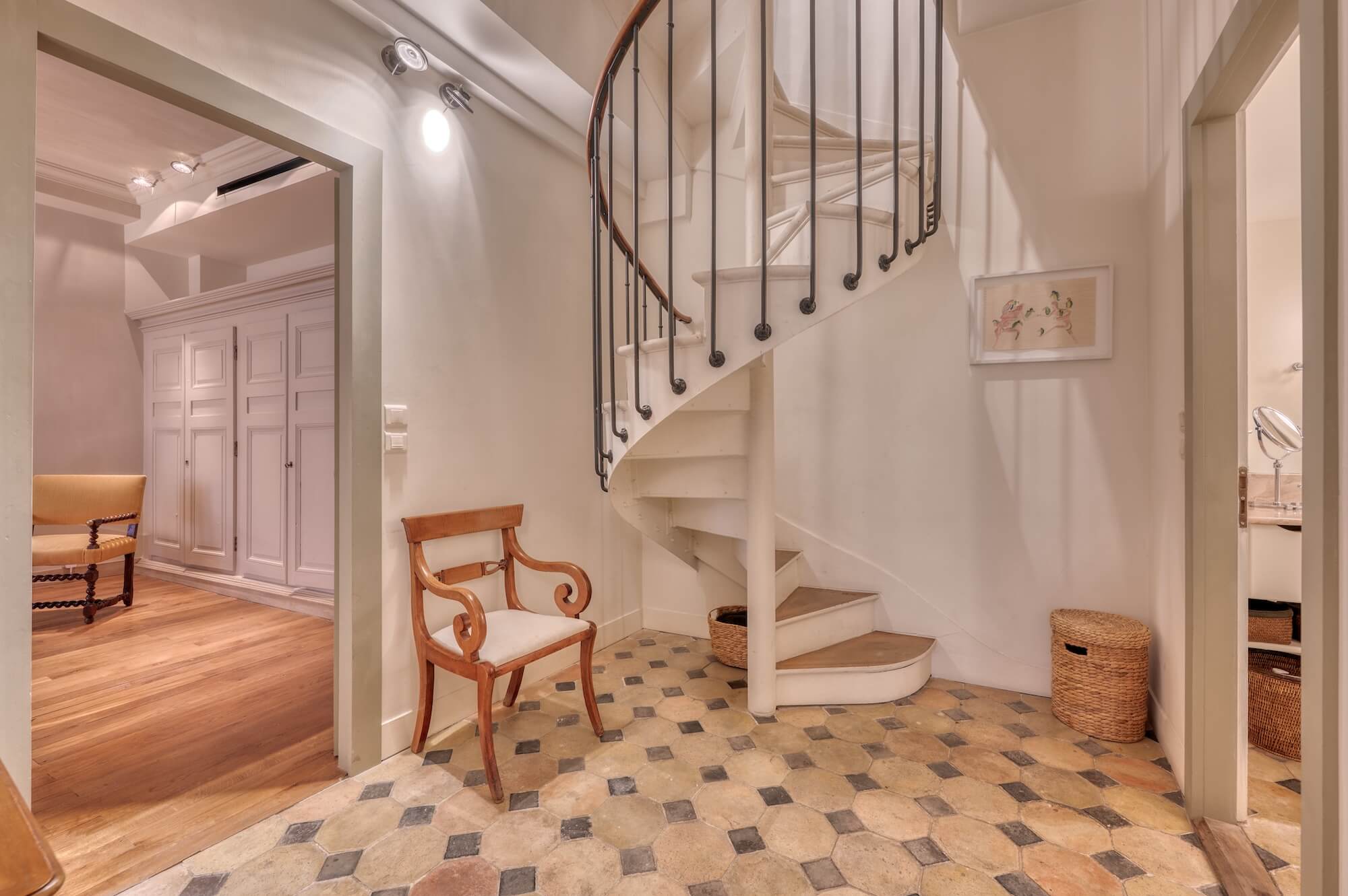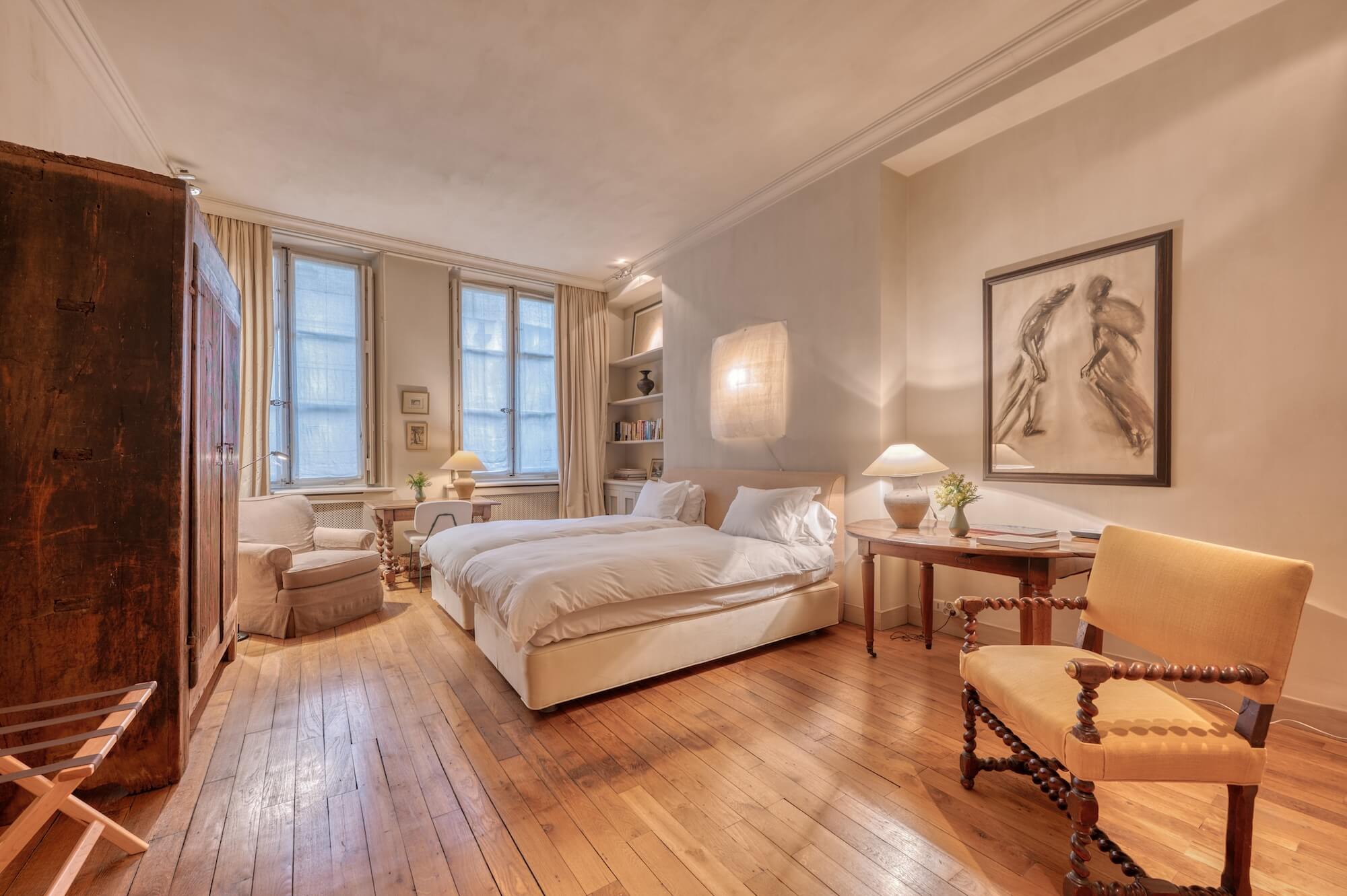 This St Germain duplex, with its two bedrooms and two bathrooms over a spacious floorplan (1300 square feet) of earth-toned, inviting living spaces, is a delightful home away from home.