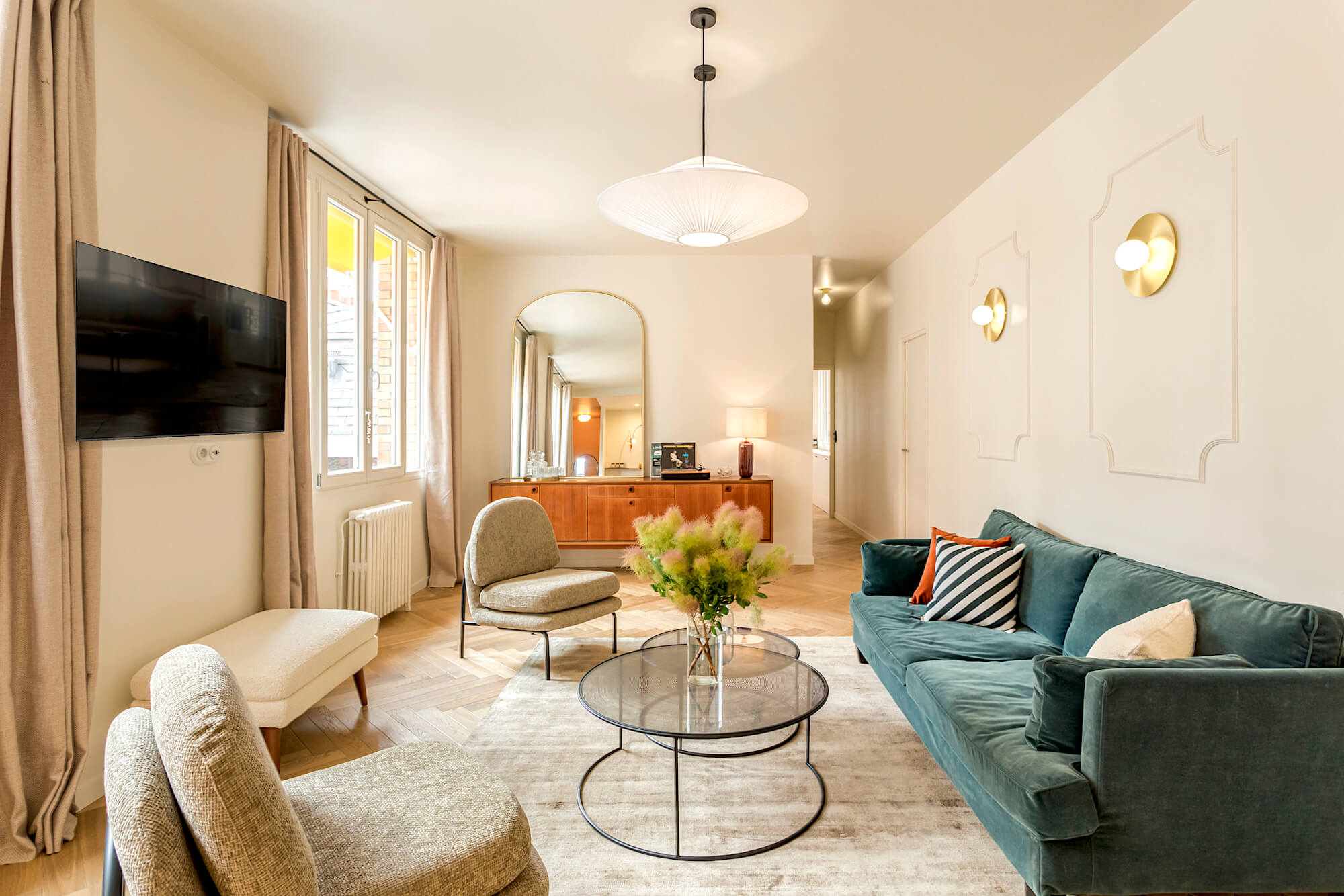 Set within a beautifully preserved Art Deco building, this spacious 110 m² Paris apartment was fully renovated in July 2023 to provide the ideal base for both vacation rentals and business travelers seeking elegance, privacy, and convenience.