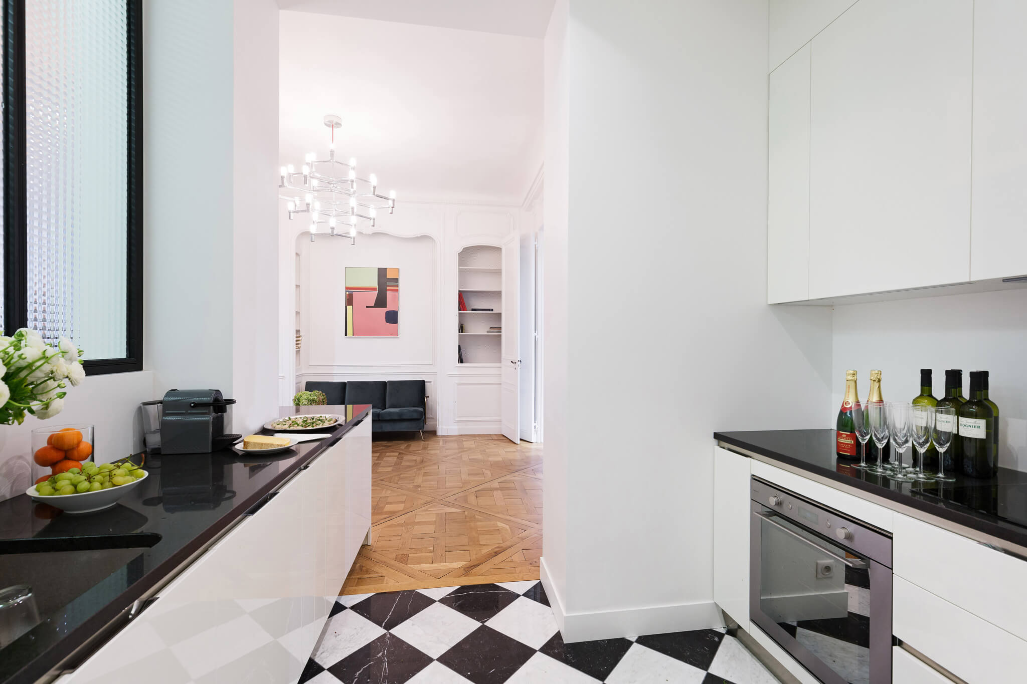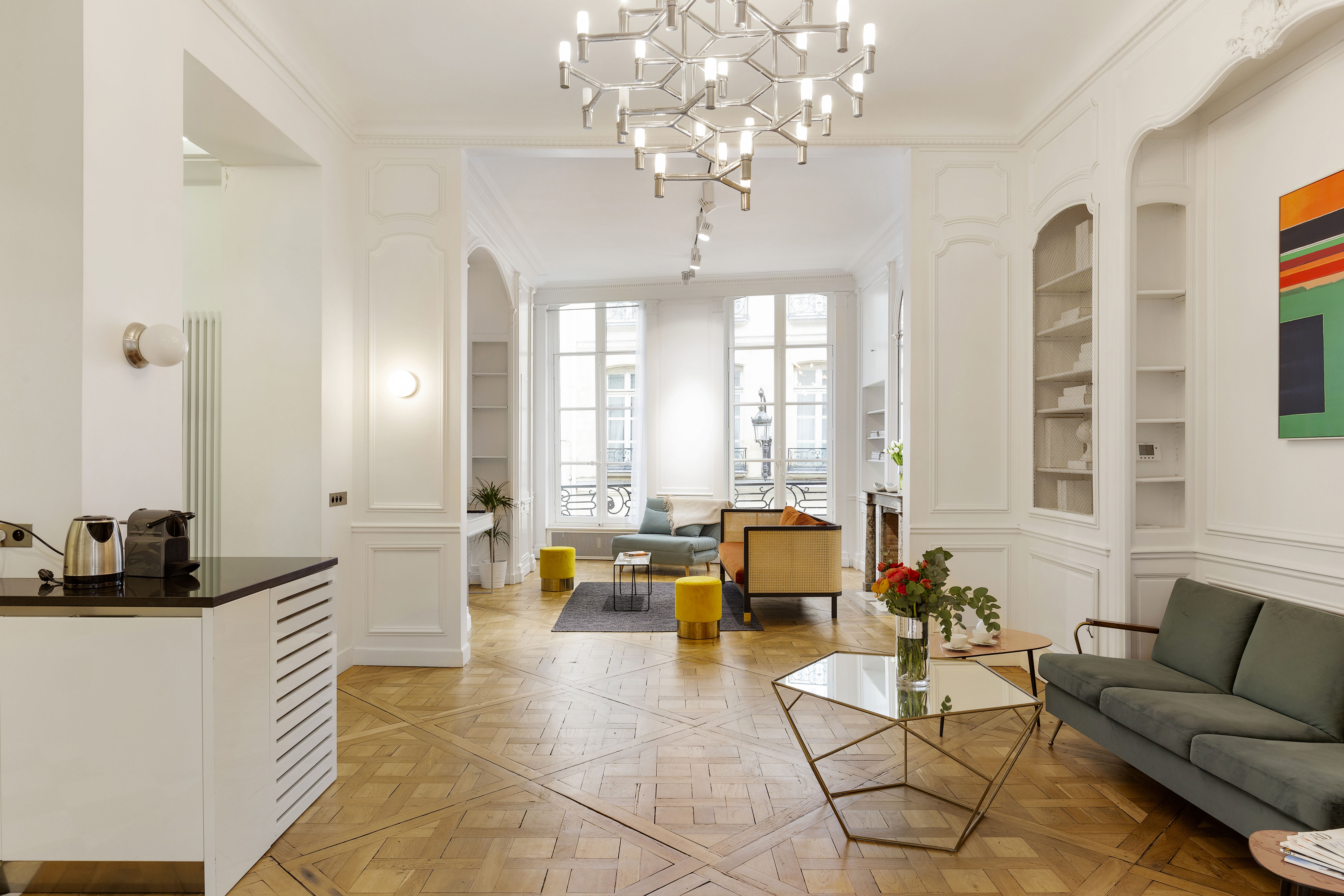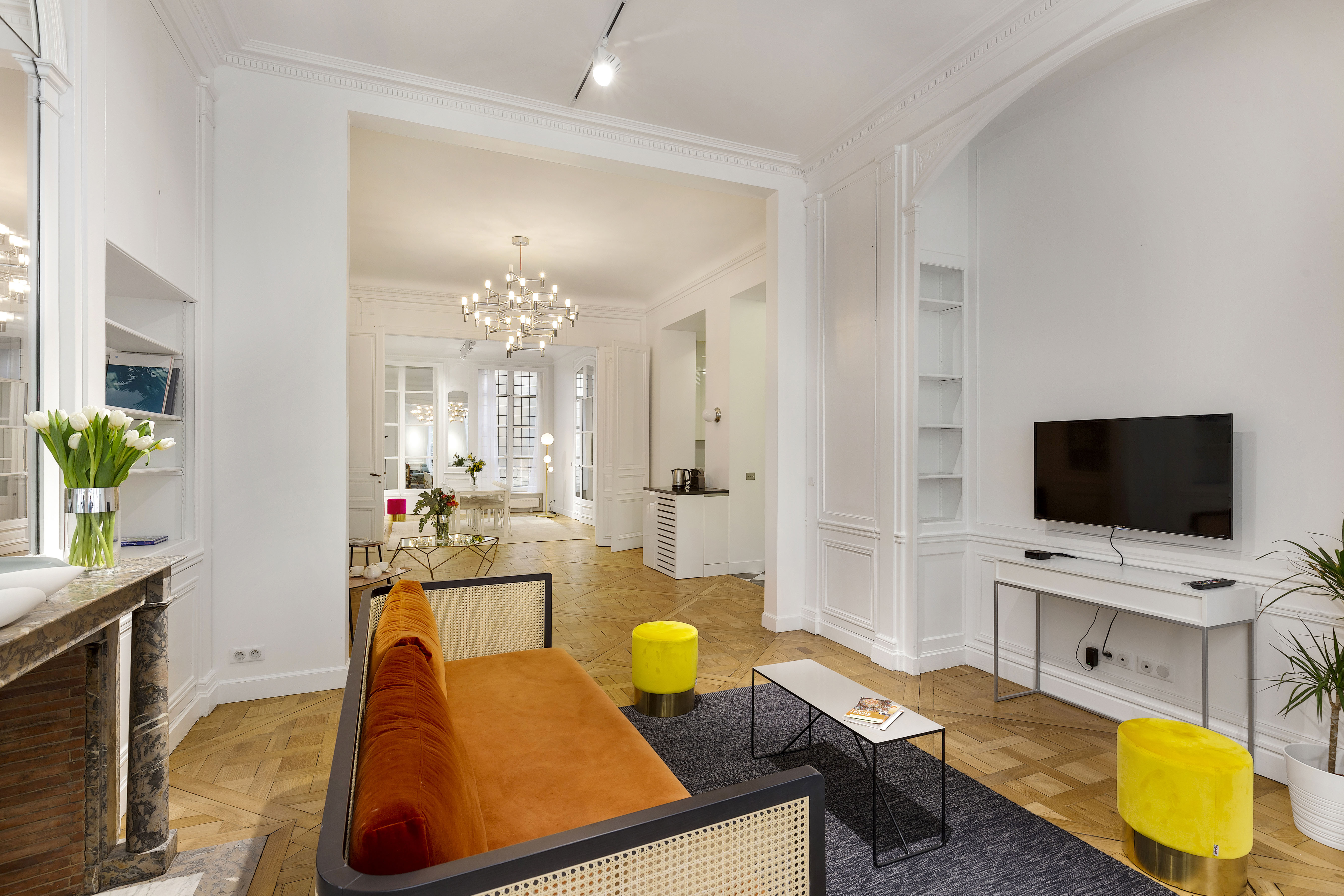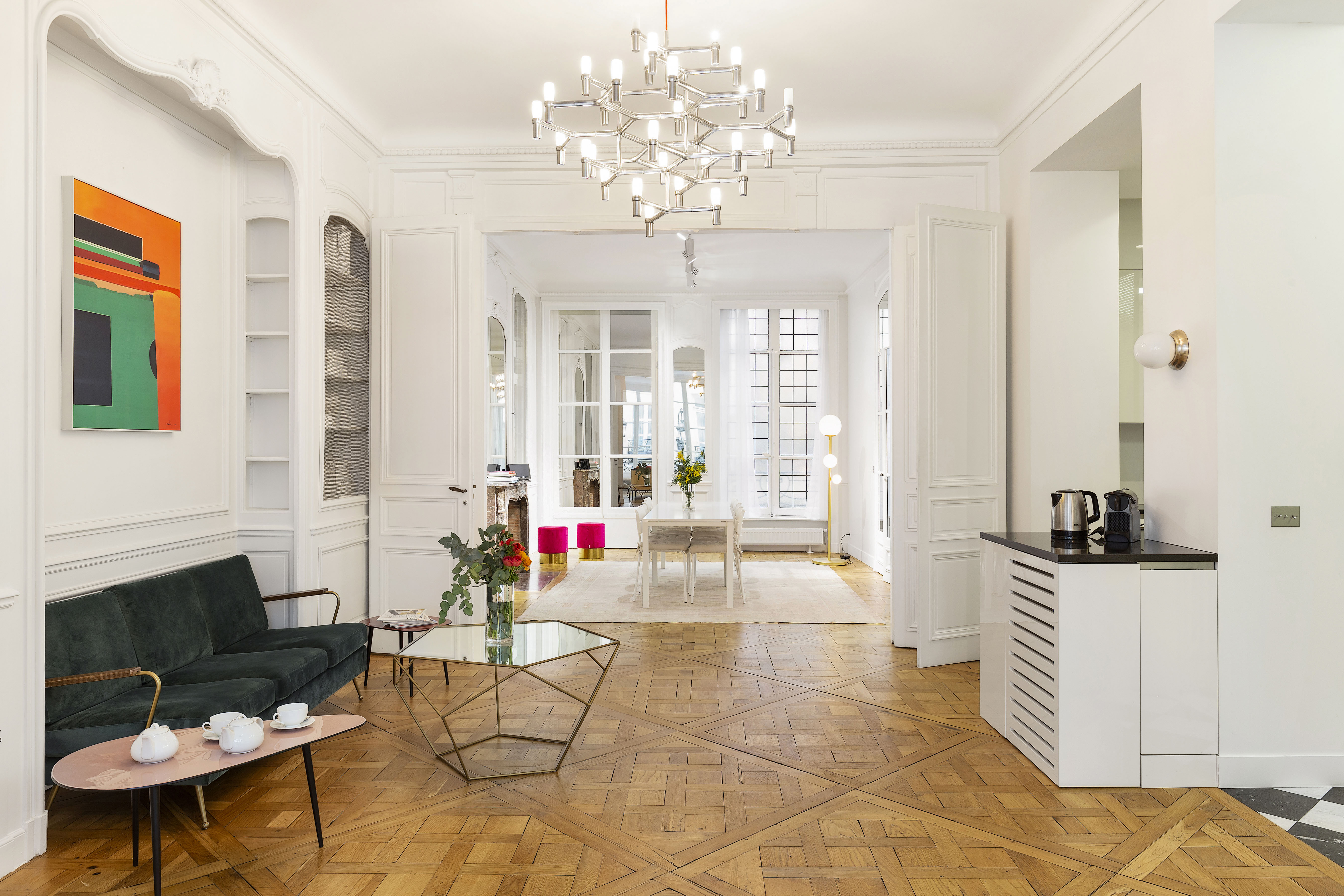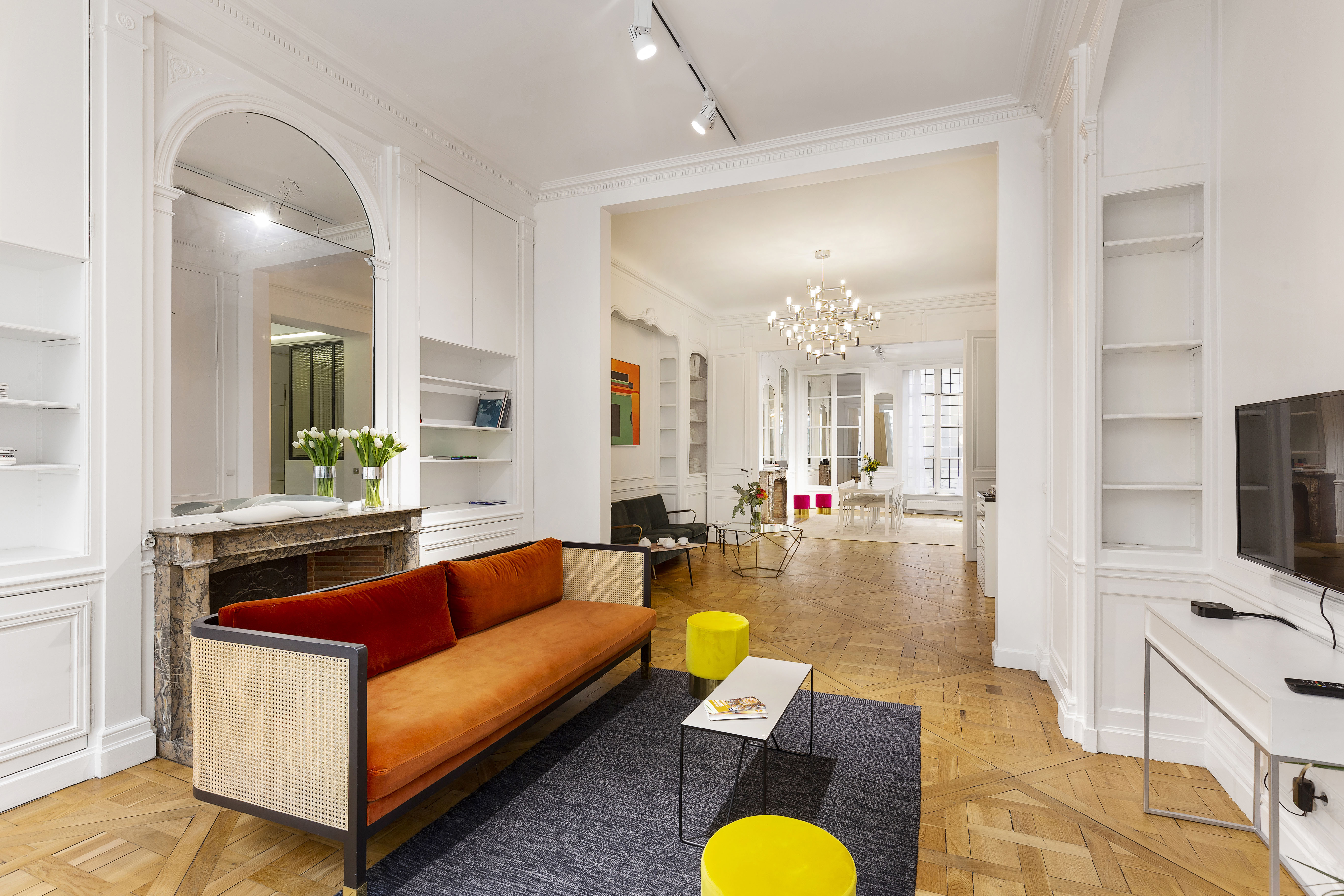 An exquisite blend of modern décor and traditional French architecture - complete with gorgeous herringbone parquet, French windows, high ceilings, crown moldings, and marble fireplaces - this luxury Paris rental is an ideal home base for families, friends, business travelers, and honeymooners alike, who are looking for space, modern comforts, and authentic French sophistication.