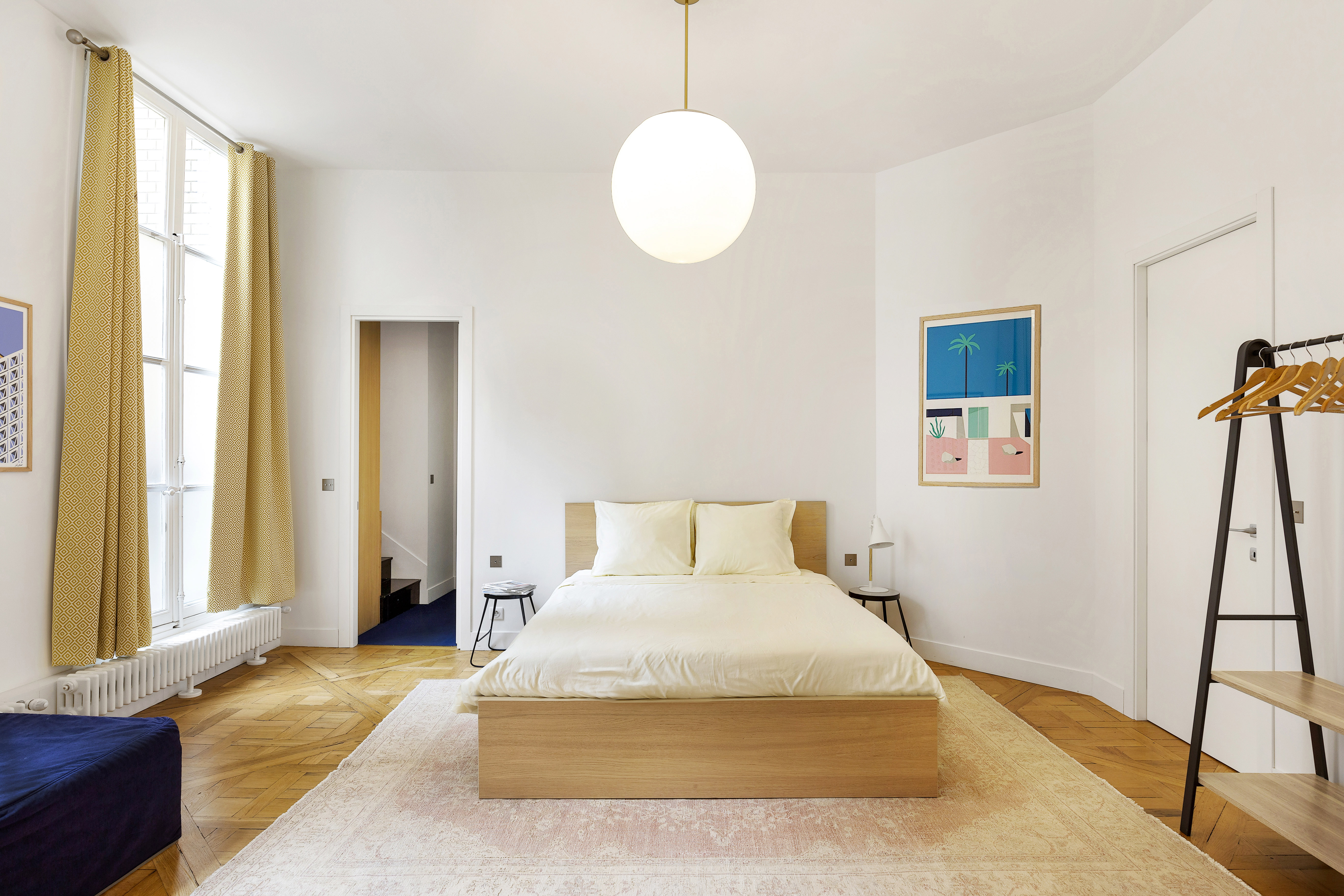 This chic and spacious two-bedroom Parisian apartment is ideally located by the Louvre museum, Tuileries Garden, Seine River, and the famous shopping along Rue St Honoré. The beautiful Palais Royal gardens, Opéra Garnier, and La Comédie Française are also just steps away from this quintessential Parisian flat.